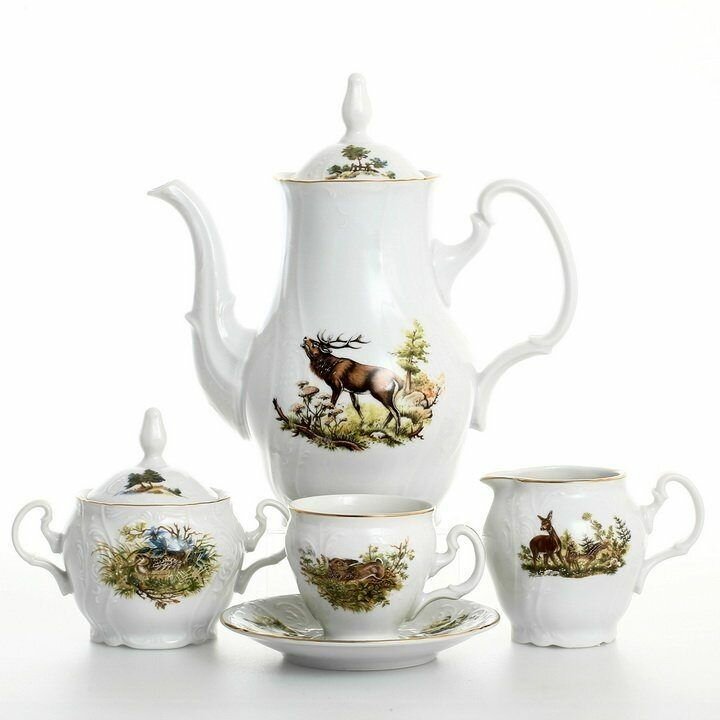 Кофейный сервиз 6/9; "Bernadotte" декор "Охотничьи сюжеты" Hoff