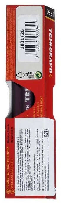 Упаковка карандашей чернографитовых KOH-I-NOOR 1831 2B трехгранный 6 шт./кор. 183102B001KS