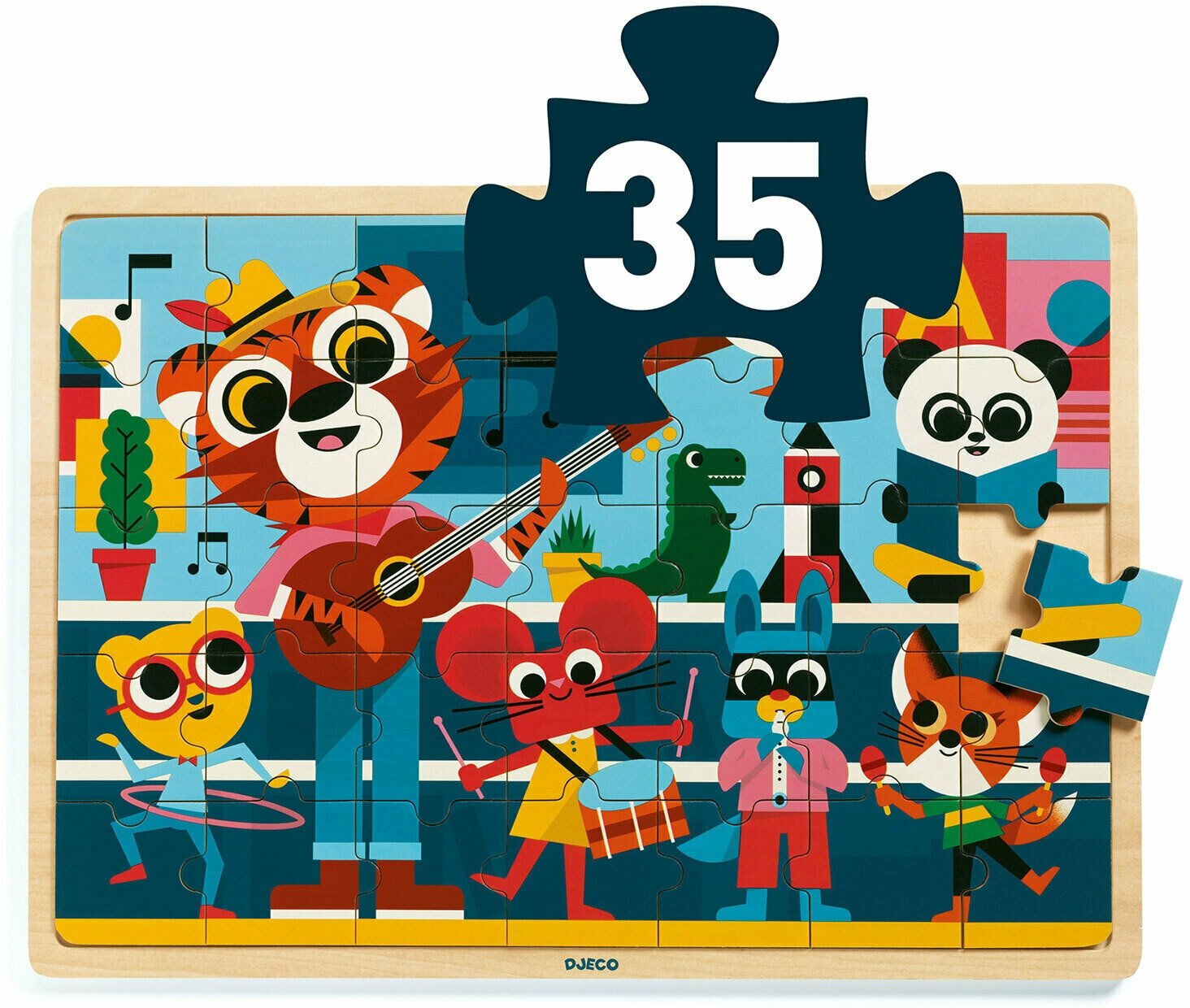 Деревянный пазл-вкладка с крупными деталями «Музыка» от Djeco рассчитан на детей от 3 -х лет. На пазле изображены милые зверьки, которые веселятся под музыку большой компанией. Пазлы Djeco отличаются ярким и оригинальным дизайном и способствуют всестороннему развитию ребёнка. Игра с пазлами помогает развивать мелкую моторику и координацию. В процессе работы со сбором пазлов развивается воображение и логическое мышление, ребёнок становится более усидчивым и привыкает аккуратно выполнять задания. Пазл состоит из деревянного основания и 35 элементов пазла. Головоломка упакована в красивую упаковку и станет отличным подарком для вашего малыша. Размер пазла: 40 х 28 х 1 см. Взгляните на другой милый пазл от бренда Джеко «Аэропорт», который станет отличным подарком для любознательного малыша.