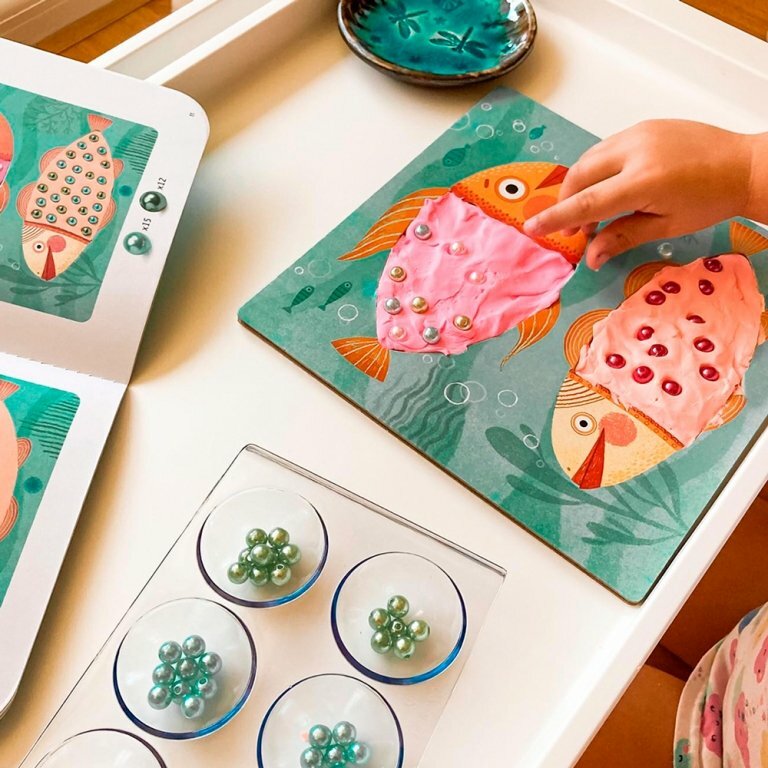 от Djeco предлагает ребенку заполнить картинки цветной пластичной глиной и украсить получившиеся фигурки перламутровыми бусинами. Набор будет интересен детям от 3 до 6 лет.