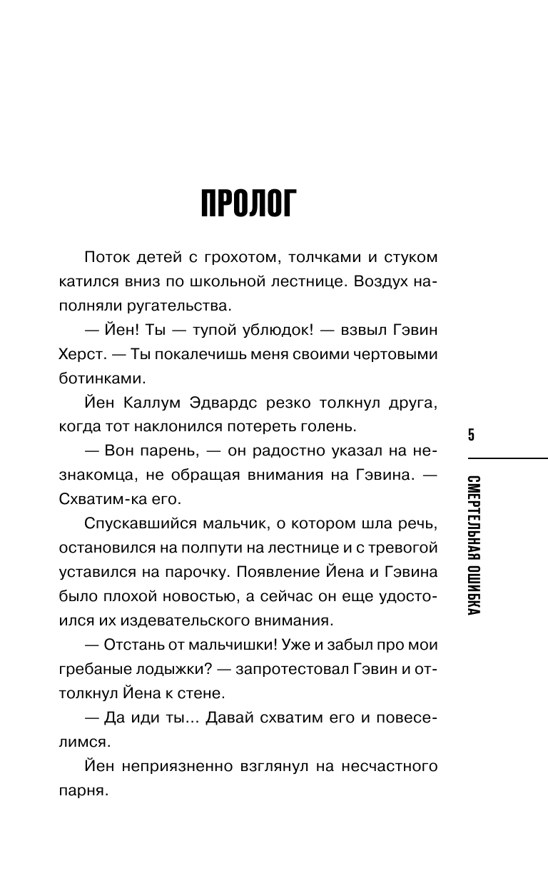 Никакаго "захватывающего детективного триллера" под обложкой я не нашла. "Полный неожиданностей" - НЕТ. И с этим все плохо. "Смертельная ошибка" - Чья? Где? Какая? Где маньяк, ужас, реки крови? В этой книге этого нет. Маньяк на 5 страниц, ужас - это диалоги героев, реки крови - утекли.