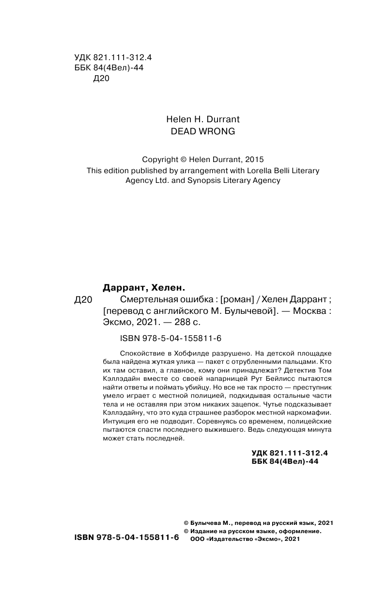 Книга: Смертельная ошибка (Хелен Даррант); Эксмо, Inspiria, Редакция 1, 2021