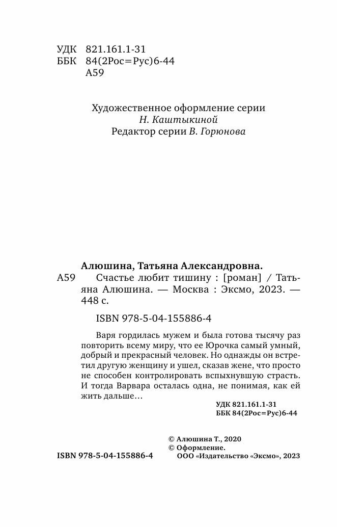 Книга: Счастье любит тишину (Алюшина Татьяна Александровна); ООО "Издательство "Эксмо", 2021