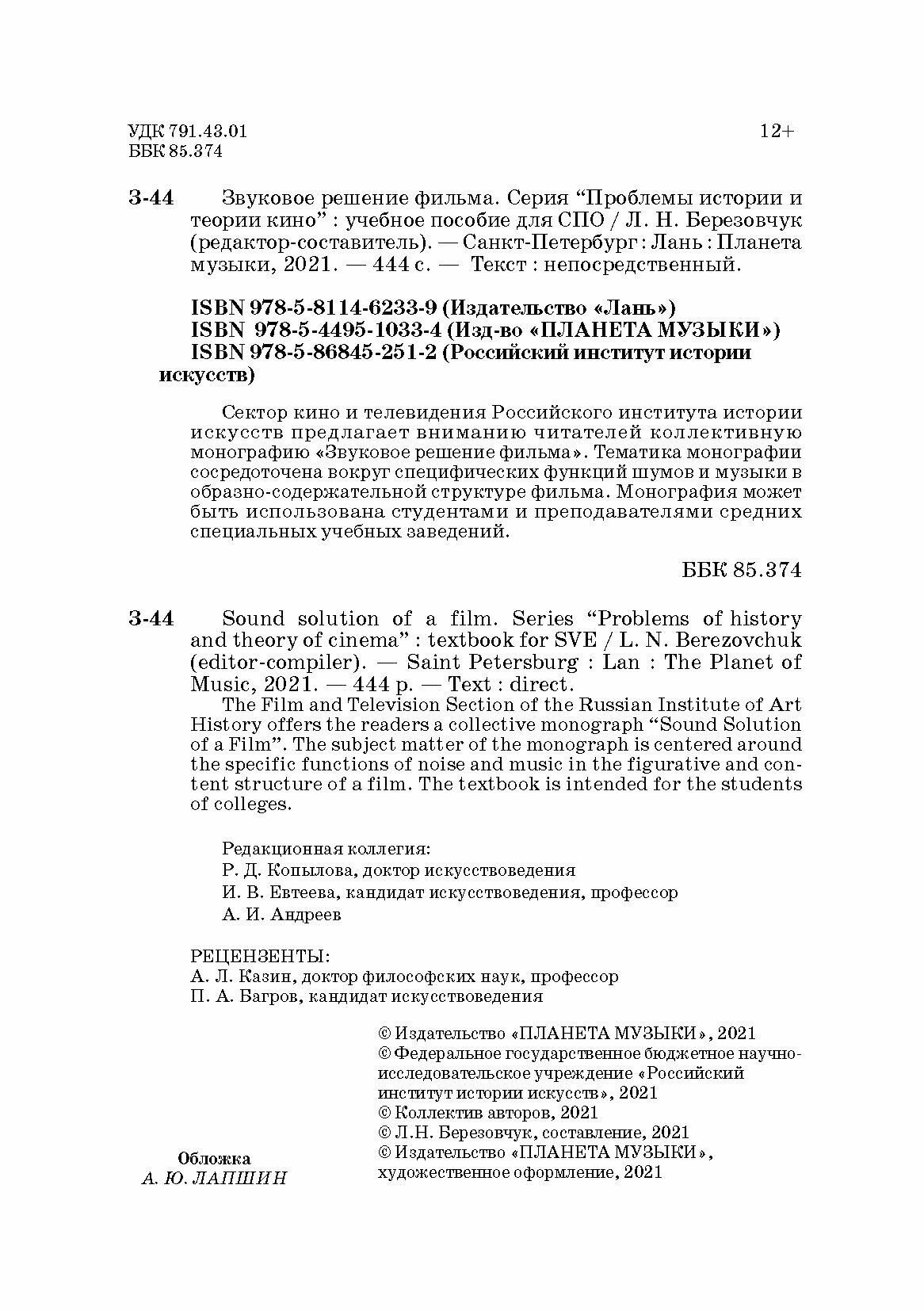 Книга: Звуковое решение фильма (Андреев Андрей Игоревич, Бакиров Дмитрий Валерьевич, Березовчук Лариса Николаевна); Планета Музыки, 2022