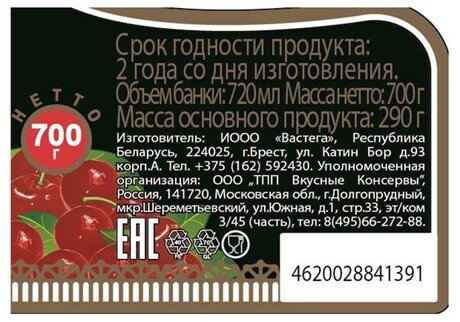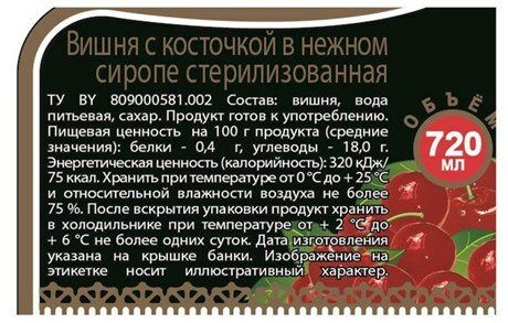 | Состав | вишня свежая, вода питьевая, сахар-песок. |
