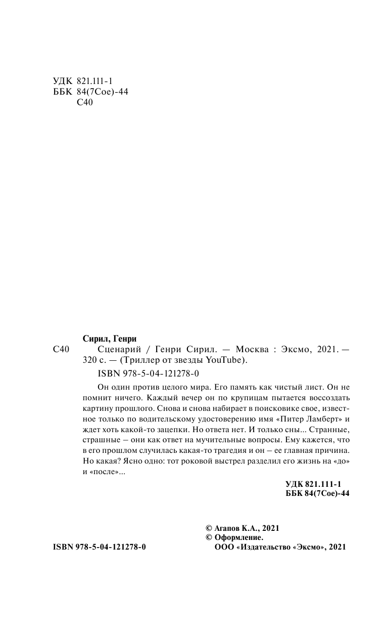 Книга: Сценарий (Сирил Генри); ООО "Издательство "Эксмо", 2021