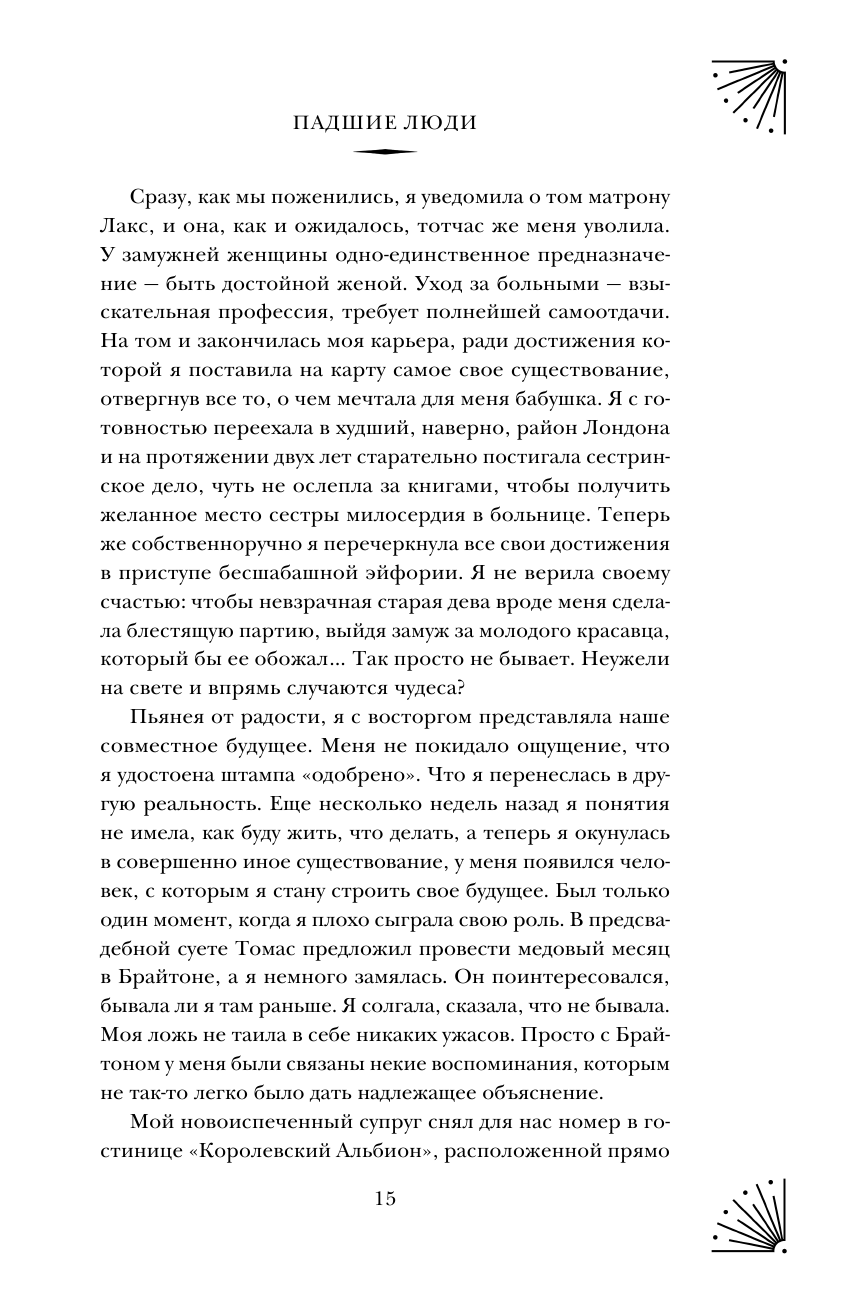 Жизнь старой девы в викторианскую эпоху была незавидна, но сестре милосердия Сюзанне улыбается удача, и она выходит замуж за молодого доктора. Однако счастье молодоженов продлилось недолго, и вскоре Сюзанна убеждается, что совсем не знает человека, за которого она вышла замуж. Люблю викторианскую эпоху, и в романе достоверно переданы быт и нравы того времени. Повествование идет от лица Сюзанны, которая довольно неоднозначная героиня, что только в плюс сюжету. Читается легко и интересно, несмотря на большое количество мрачных моментов. Перевод хороший. Рекомендую поклонникам викторианского сеттинга и детектива.