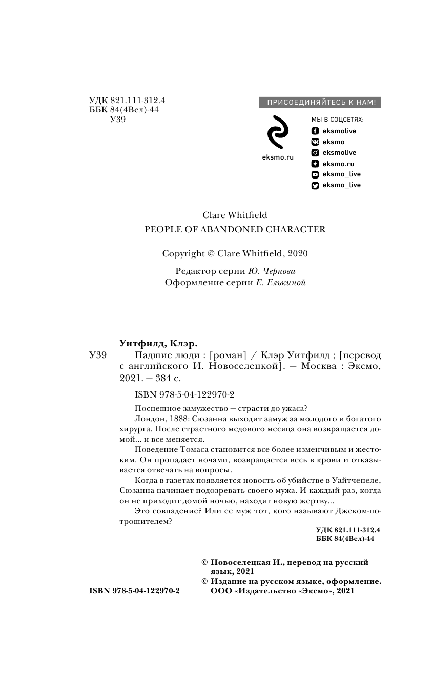 Книга: Падшие люди (Клэр Уитфилд); Эксмо, Редакция 1, 2021
