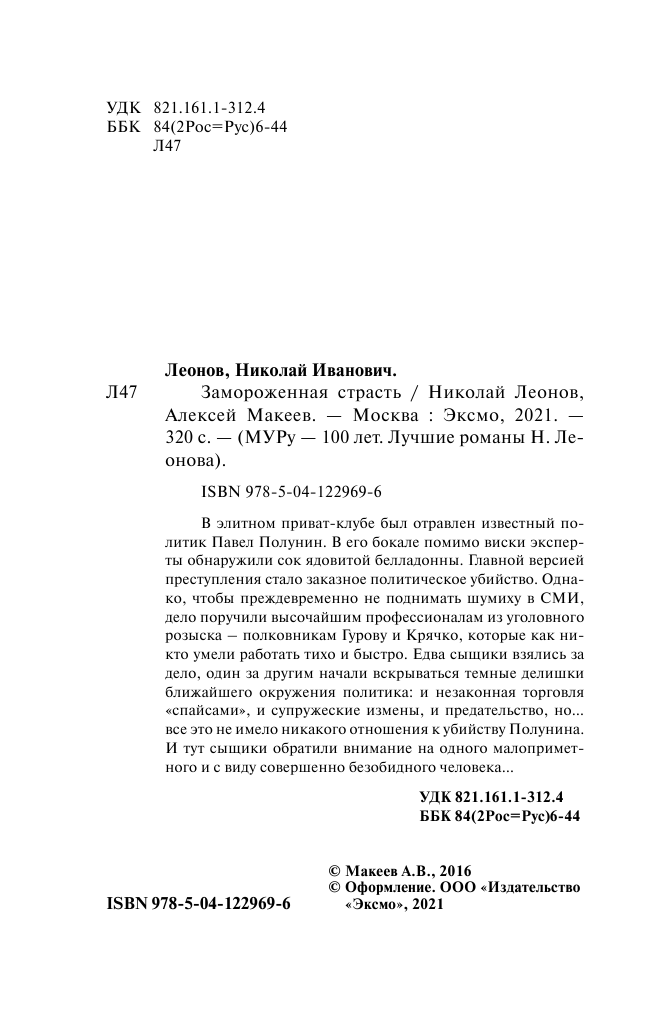Книга: Замороженная страсть (Леонов Николай Иванович, Макеев Алексей Викторович); ООО "Издательство "Эксмо", 2021