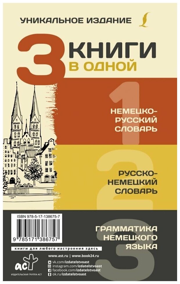 На сегодняшний день товар «Книга: 3 книги в одной: Немецко-русский словарь. Русско-немецкий словарь. Грамматика немецкого языка (Матвеев Сергей Александрович); ООО "Издательство Астрель", 2021» можно купить с кешбеком в 3 магазинах: book24, Буквоед, Читай-город