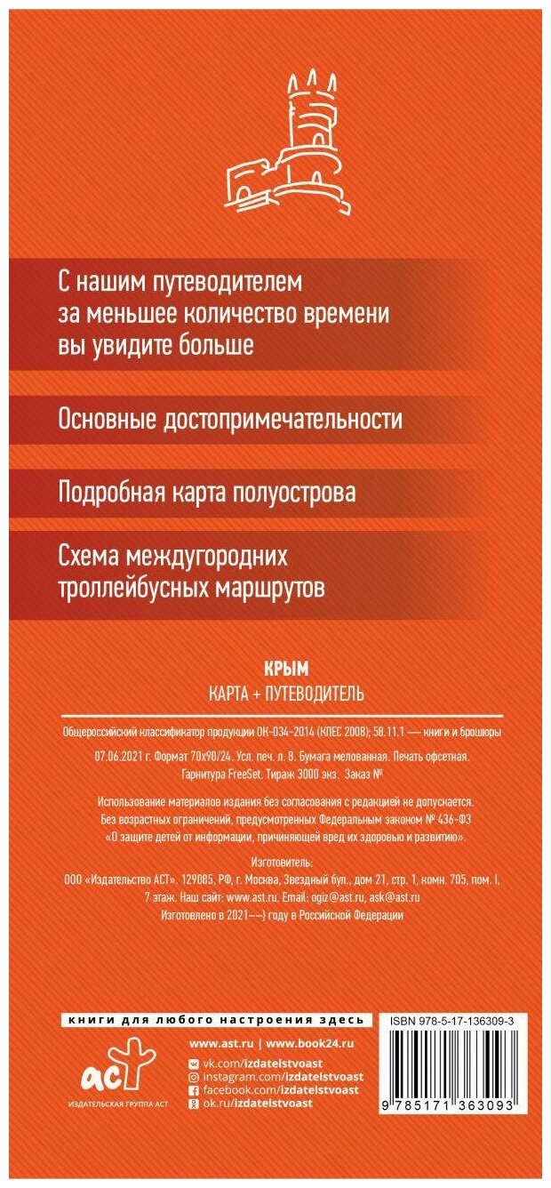 Сервис сравнения цен СкидкаГИД предлагает сравнить цены на товар «Книга: Крым. Карта+путеводитель (Автор не указан); АСТ, ОГИЗ, 2021»