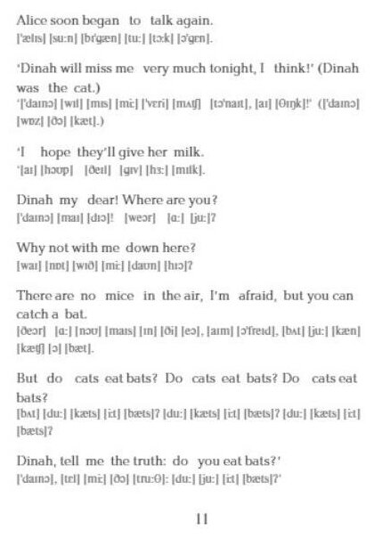 Эту книгу посоветовала преподаватель для эффективной работы со звуками на начальном уровне подготовки. В ней каждая строка дублируется транскрипцией, что помогает совершенствовать произношение, которому не так много уделяется время в школе. Книга имеет мягкую красочную обложку, внутри есть черно-белые иллюстрации. В конце словарь на 40 страниц, чтобы легко переводить незнакомые слова