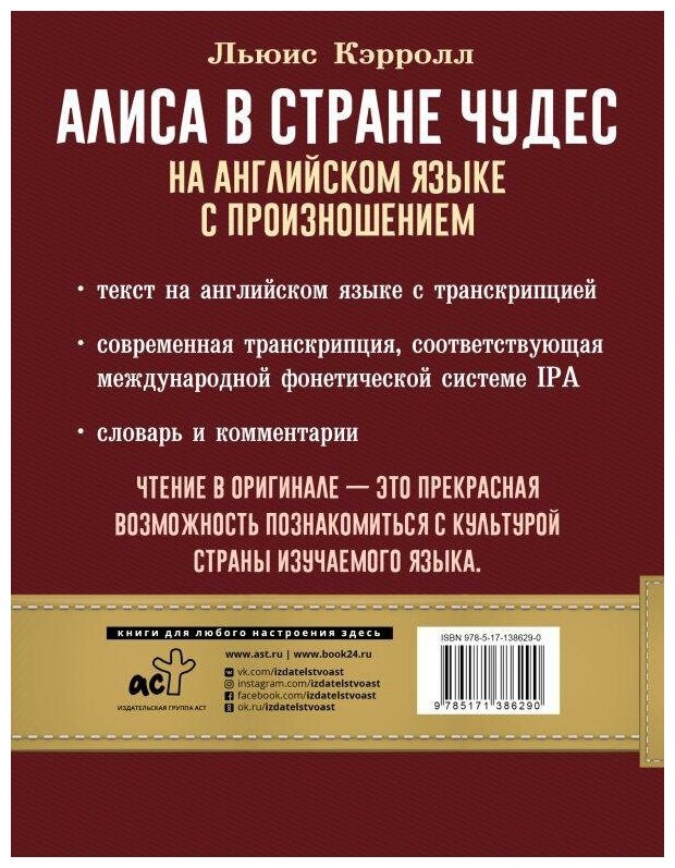Алиса в стране чудес на английском языке с произношением (Льюис Кэрролл); Издательство АСТ, 2021
