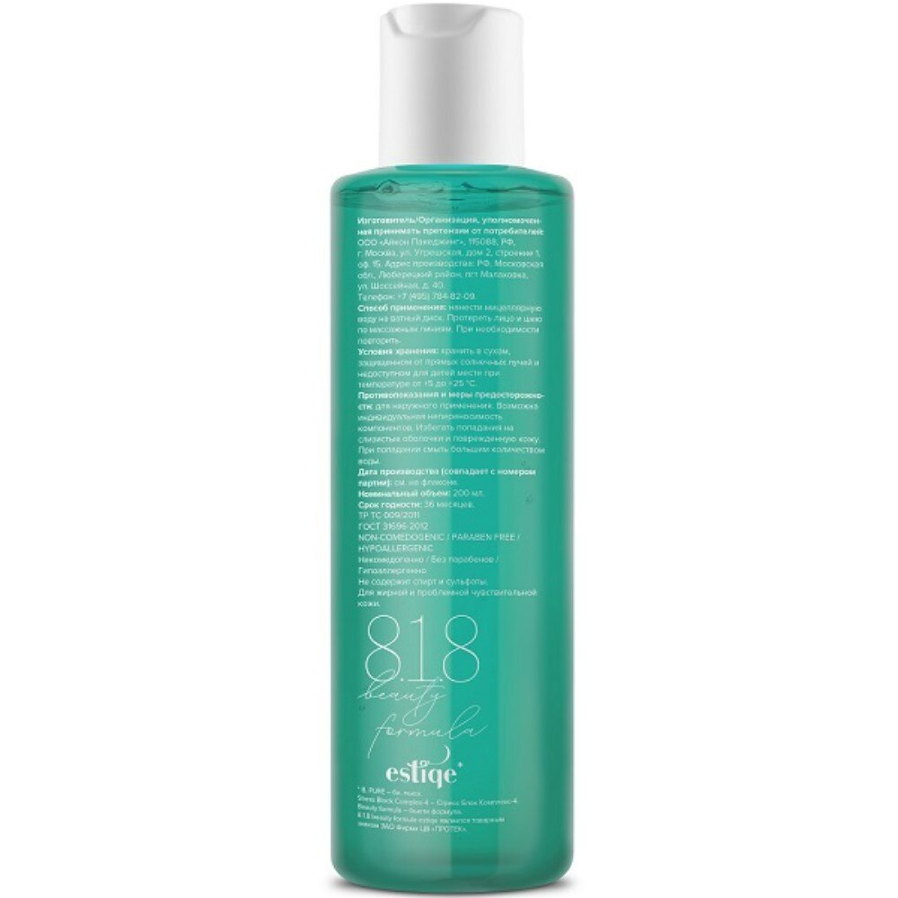 Вода мицеллярная для жирной чувствительной кожи Estiqe 8.1.8 Beauty formula 200мл ООО Айкон Пакеджинг (1369550)