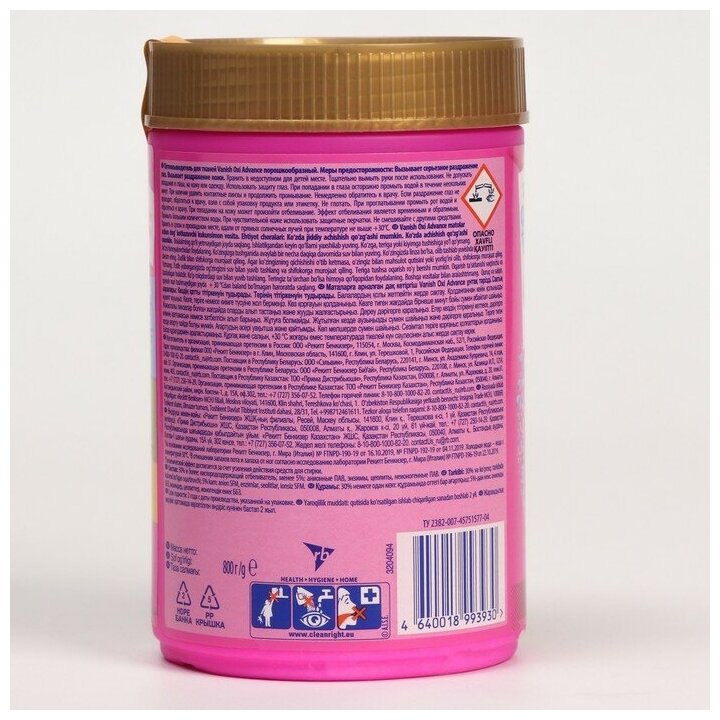 | Химический состав | 30% и более: кислородсодержащий отбеливатель; менее 5%: анионные ПАВ, неионогенные ПАВ, цеолиты, энзимы. |