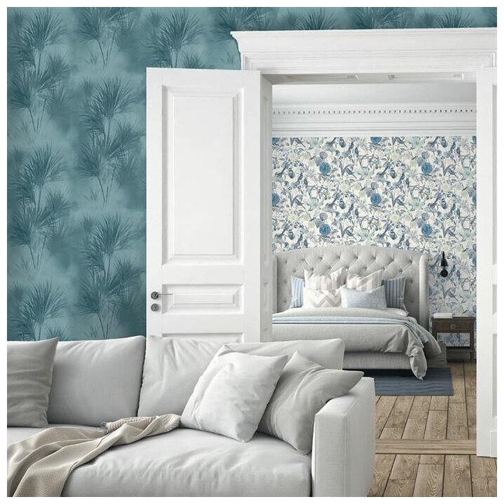 Модель: Fragrance 51193801 Винил на флизелине (0,53*10,05) Синий, Штукатурка/Листья