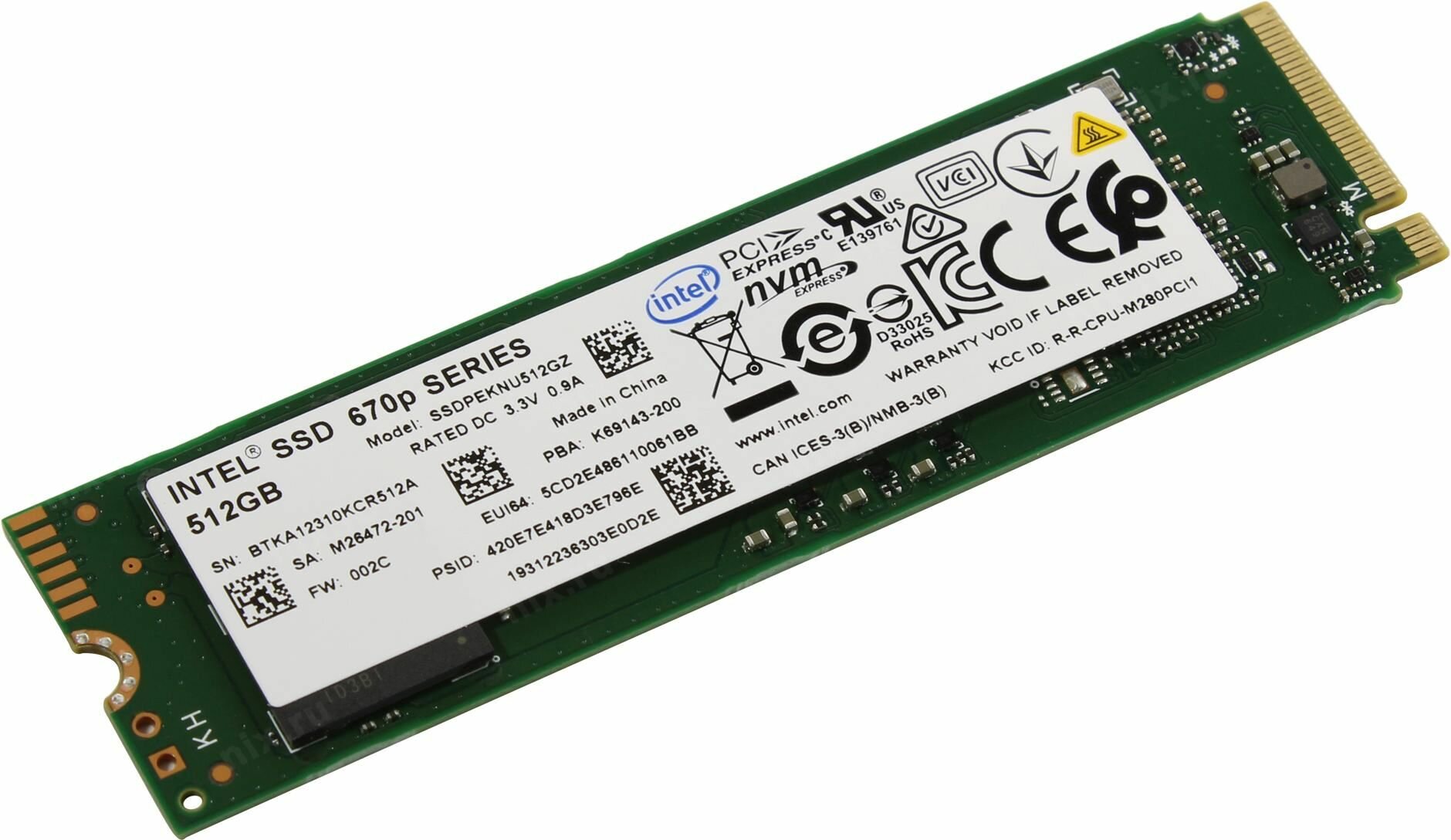 Накопитель SSD M.2 2280 Intel 670p 512GB PCIe 3.0 x4 NVMe 3D4 QLC 3000/1600MB/s IOPS 110K/315K MTBF 1.6M SSDPEKNU512GZX1