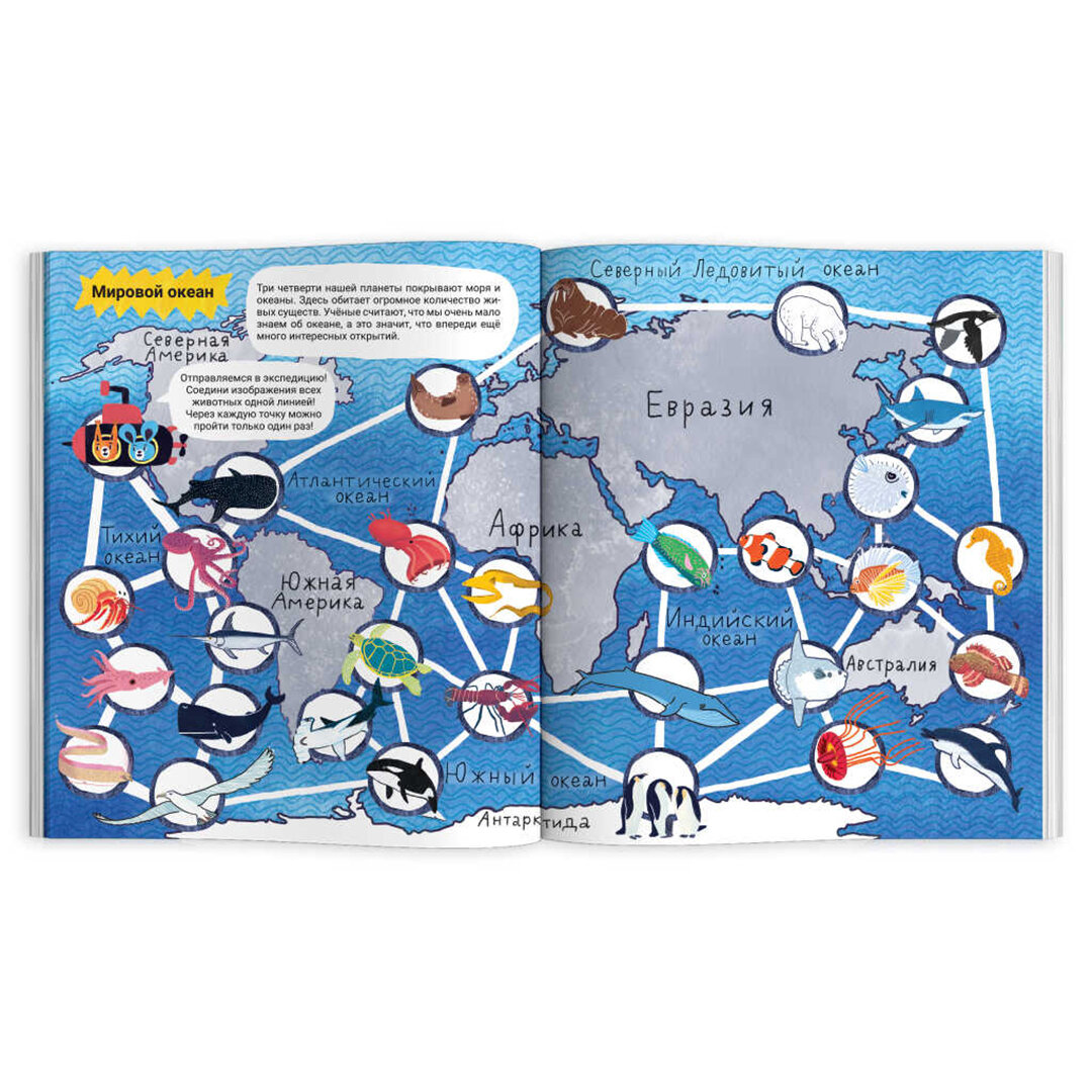 Присоединяйся к увлекательной экспедиции в глубины океана вместе с друзьями Максом и Паксом. Ты узнаешь, кто живёт в толще воды, а кто — на дне вдали от солнечный лучей. А ещё увидишь самых странных и необычных в мире рыб, коралловый риф и животных Арктики. Вперёд навстречу открытиям!