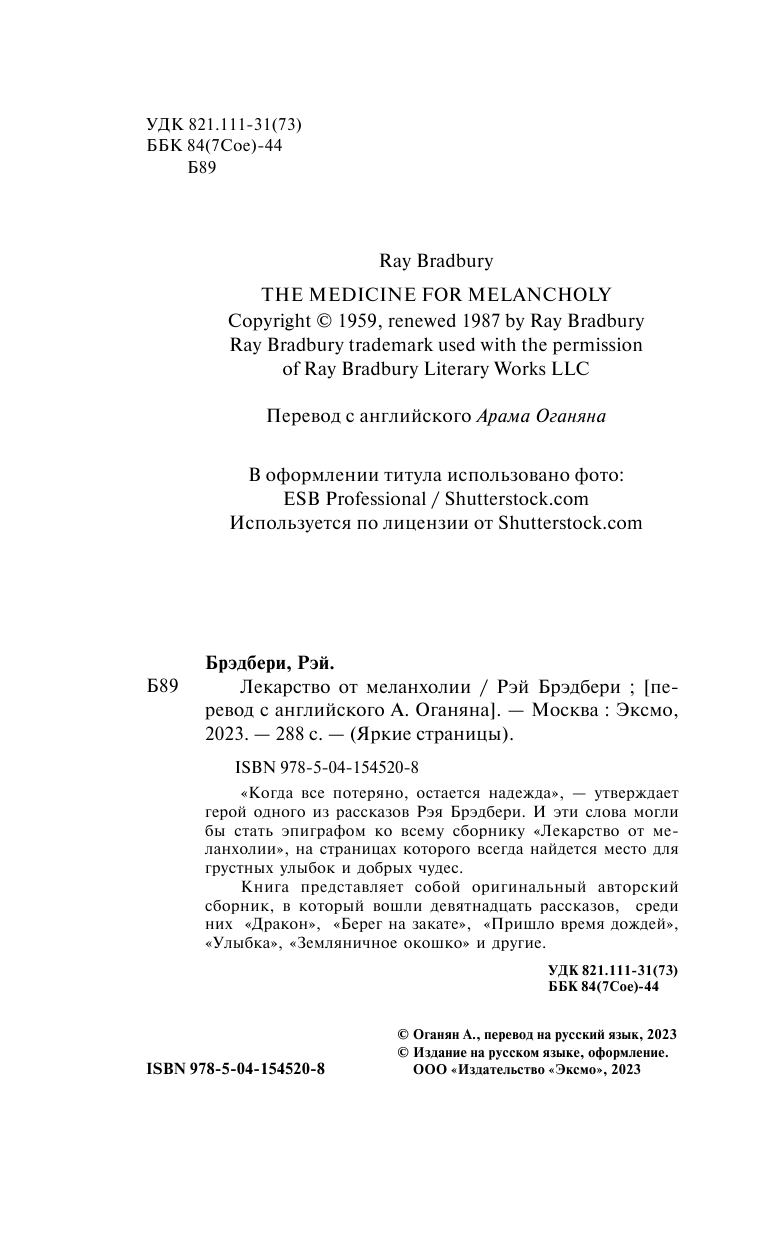 Книга: Лекарство от меланхолии (Рэй Дуглас Брэдбери); Эксмо, Редакция 1, 2021