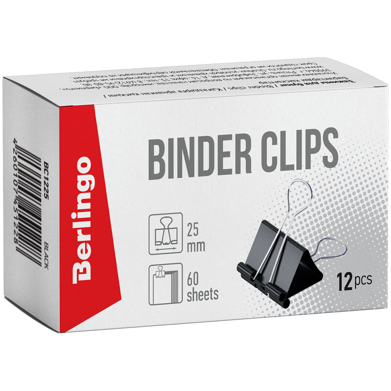 Зажимы для бумаг Berlingo 25мм 12шт
