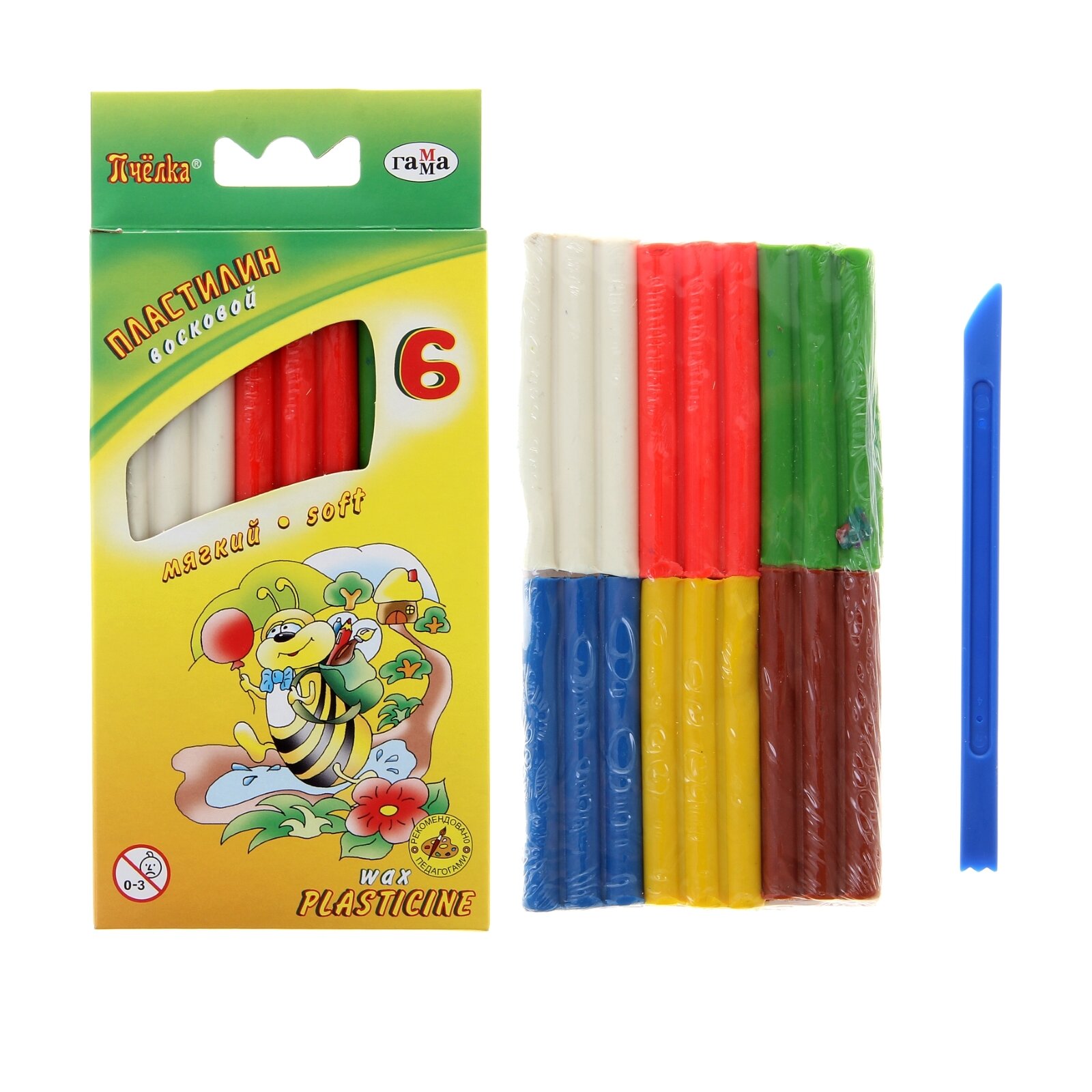 Пластилин Гамма Пчелка восковой мягкий со стеком 6 цветов
