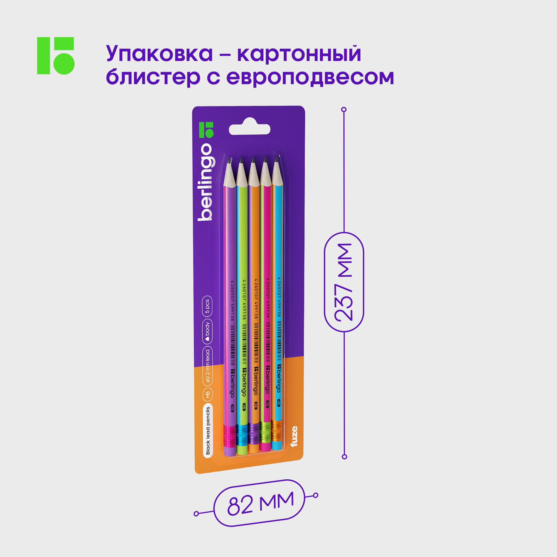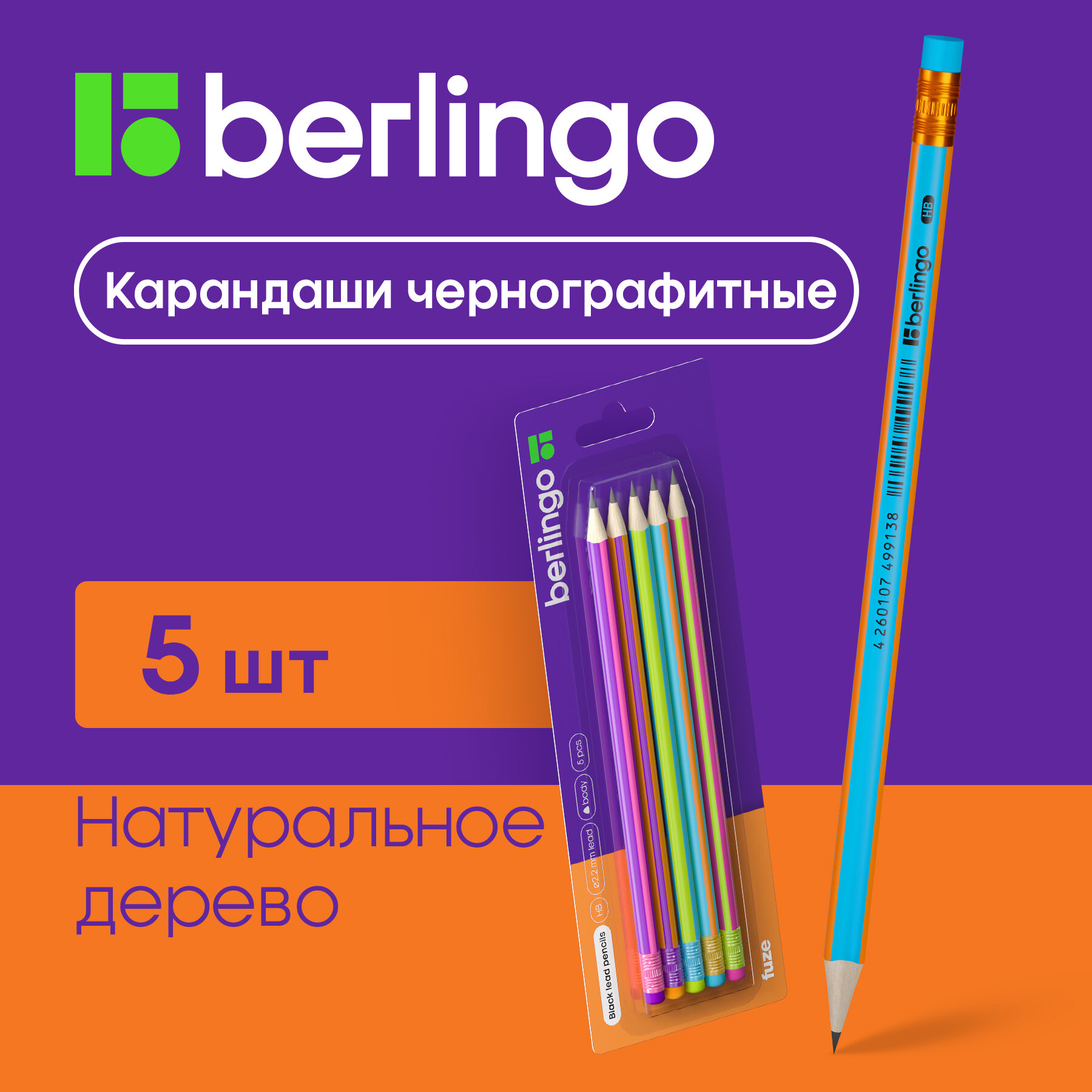 Набор карандашей Berlingo Fuze чернографитные 5шт