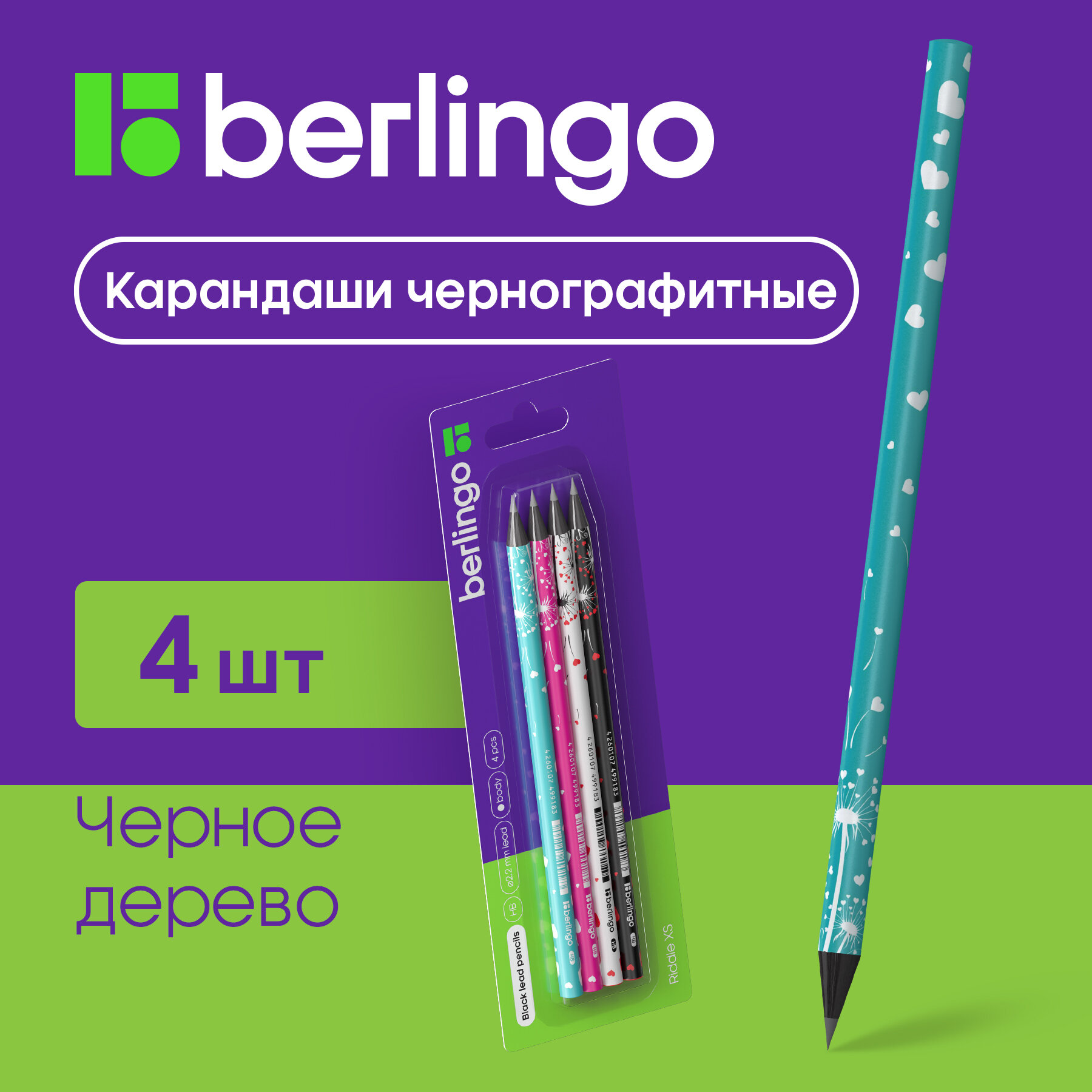 Набор карандашей Berlingo Riddle XS чернографитные 4шт