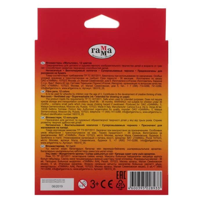 Набор фломастеров Гамма Мультики смываемые 12 цветов