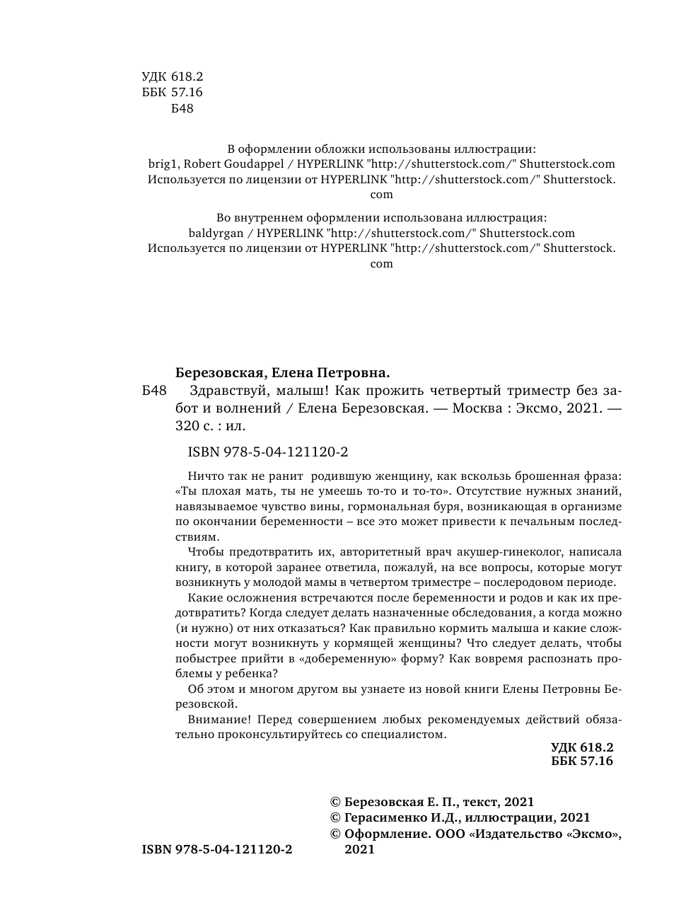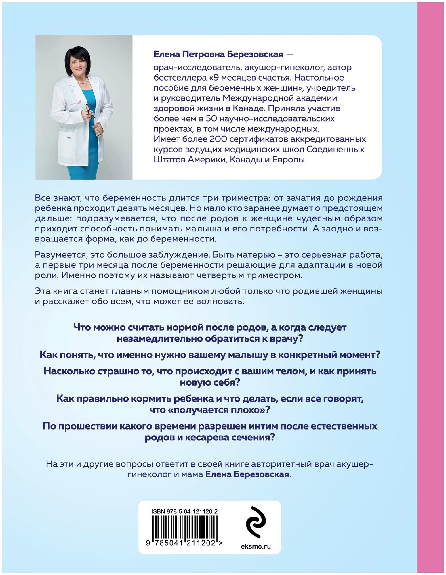 Елена Петровна Березовская заботливо проведет каждую читательницу через четвертый триместр, по-матерински даст ценные советы и поможет почувствовать себя не только матерью, но и женщиной — красивой, желанной и счастливой.