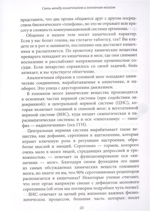 Довольно интересная книга. Тому, кто увлекается медициной или связан с нею 100% подойдет. Всю свою осознанную жизнь я задавалась вопросом мол почему если я ем какие-то неполезные продукты, после этого у меня упадок сил, после этого мне абсолютно ничего не хочется делать, хотя мозг-то требует, мозг говорит мол съешь это и тебе станет легче. Всю жизнь у меня имеется вот эта пищевая зависимость, а от этого и набор веса, а впоследствии и депрессия, потому что я не хочу никого видеть, никого слышать, не хочу ни с кем не взаимодействовать хоть как-то. В книге даются примеры пациентов, которые, изменив свой пищевой рацион, избавились от этой ипохондрии, а это подействовало на меня очень воодушевляюще. Рассказаны там банальные истины мол потребляйте овощи, потребляйте фрукты, есть целые списки продуктов, которые помогают при депрессии, сдвг, окр и прочих заболеваниях. Есть даже рецепты. Полностью книгу запомнить сложно, я рассчитываю возвращаться к ней время от времени на своем этом пути «здорового образа жизни и правильного питания». НО имеются там продукты, которые крайне сложно встретить в обычных супермаркетах