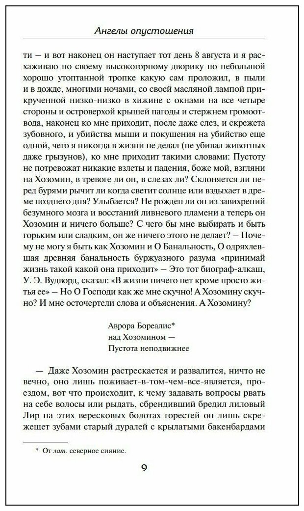 Глубокий, местами грустный, трогательный и поэтичный роман. Пожалуй, это одно из наиболее сбалансированных произведений Керуака, как по содержанию, так и по стилю написания. Все романы Керуака в определённой степени автобиографичные, но в Ангелах опустошения он, на мой взгляд, как личность раскрывается наиболее полно. К примеру, очень интересно было наблюдать его отношения с матерью.