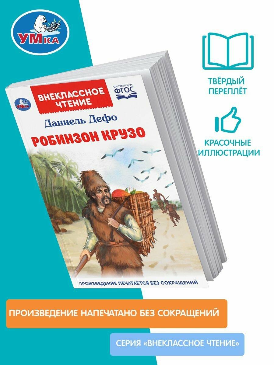 Книга «Д. Дефо. Робинзон Крузо» из серии «Внеклассное чтение» ТМ «УМка» погрузит ребёнка в удивительный мир приключений: