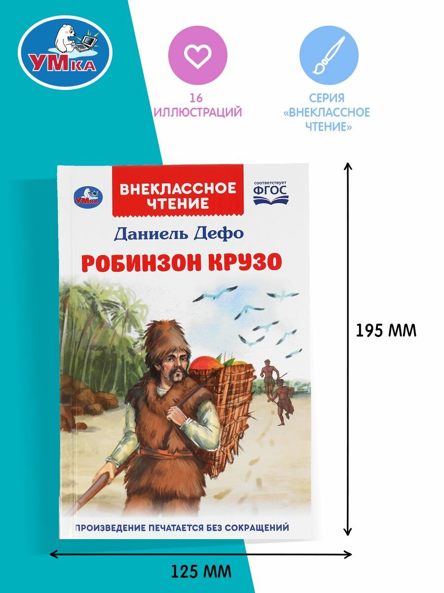 Робинзон Крузо. Даниель Дефо. Внеклассное чтение. 125х195 мм. 288 + 16 стр. 1+1 Умка в кор.18шт (Даниель Дефо); Умка, 2021