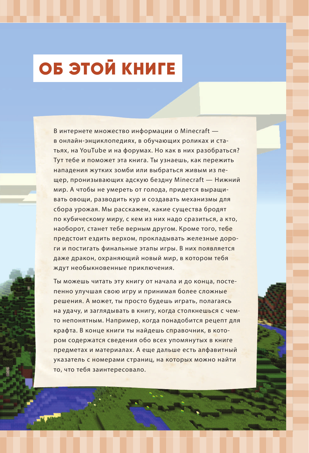 Руководство для майнкрафтеров поможет тебе выжить в мире, который наполнен монстрами и где на каждом углу поджидает опасность, даже если ты забыл свой меч!