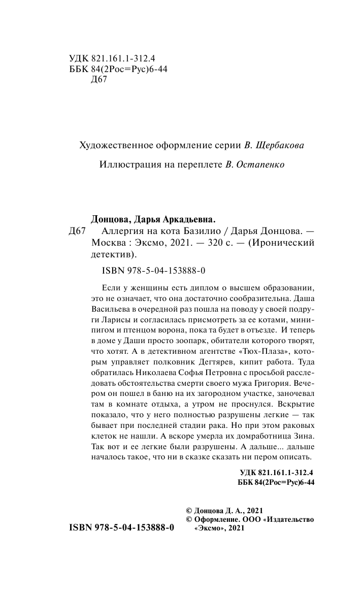 Книга: Аллергия на кота Базилио (Донцова Дарья Аркадьевна); ООО "Издательство "Эксмо", 2021
