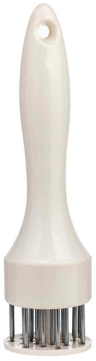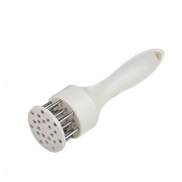 Тендерайзер (размягчитель) поможет превратить жесткое и грубое мясо в нежное и аппетитное блюдо. Острые шипы разрывают грубые волокна, и структура мяса становится мягче. Продукт готовится быстрее и проще. Защитная пластина с возвратной пружиной убережет от порезов. По сравнению с отбиванием молотком продукт не теряет своей сочности, окружающая поверхность не загрязняется, а процесс не сопровождается шумом. Рабочая часть изготовлена из стали 18/0 с повышенным содержанием никеля. На ручке имеется отверстие для подвешивания. Срок службы: не ограничен