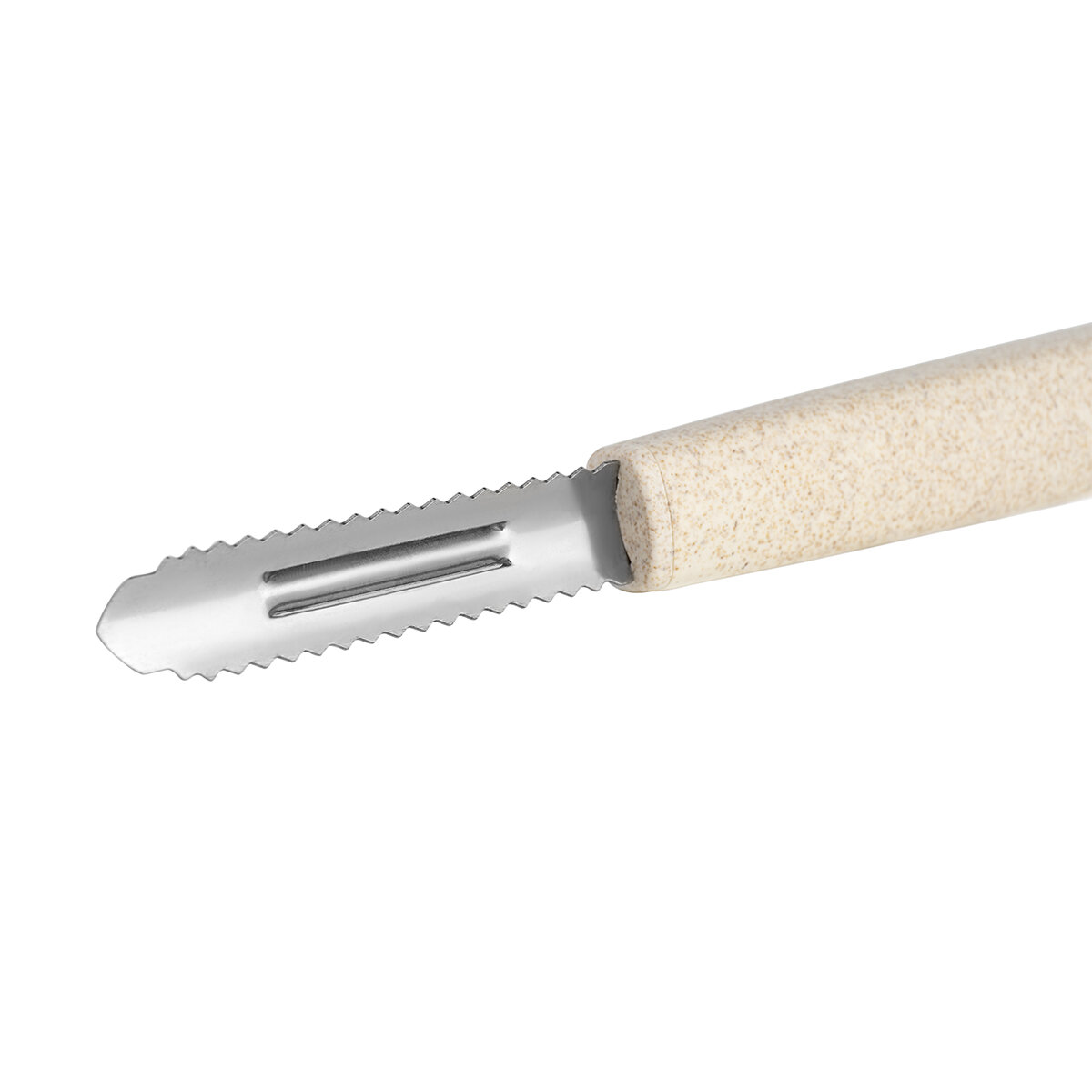 Овощечистка LARA (37853) позволяет быстро и эффективно почистить овощи и фрукты. Острое лезвие из высококачественной стали легко справится с очисткой кожуры. Комфортная рукоятка обеспечивает дополнительный комфорт при работе, а полипропиленовое покрытие препятствует выскальзыванию из рук.