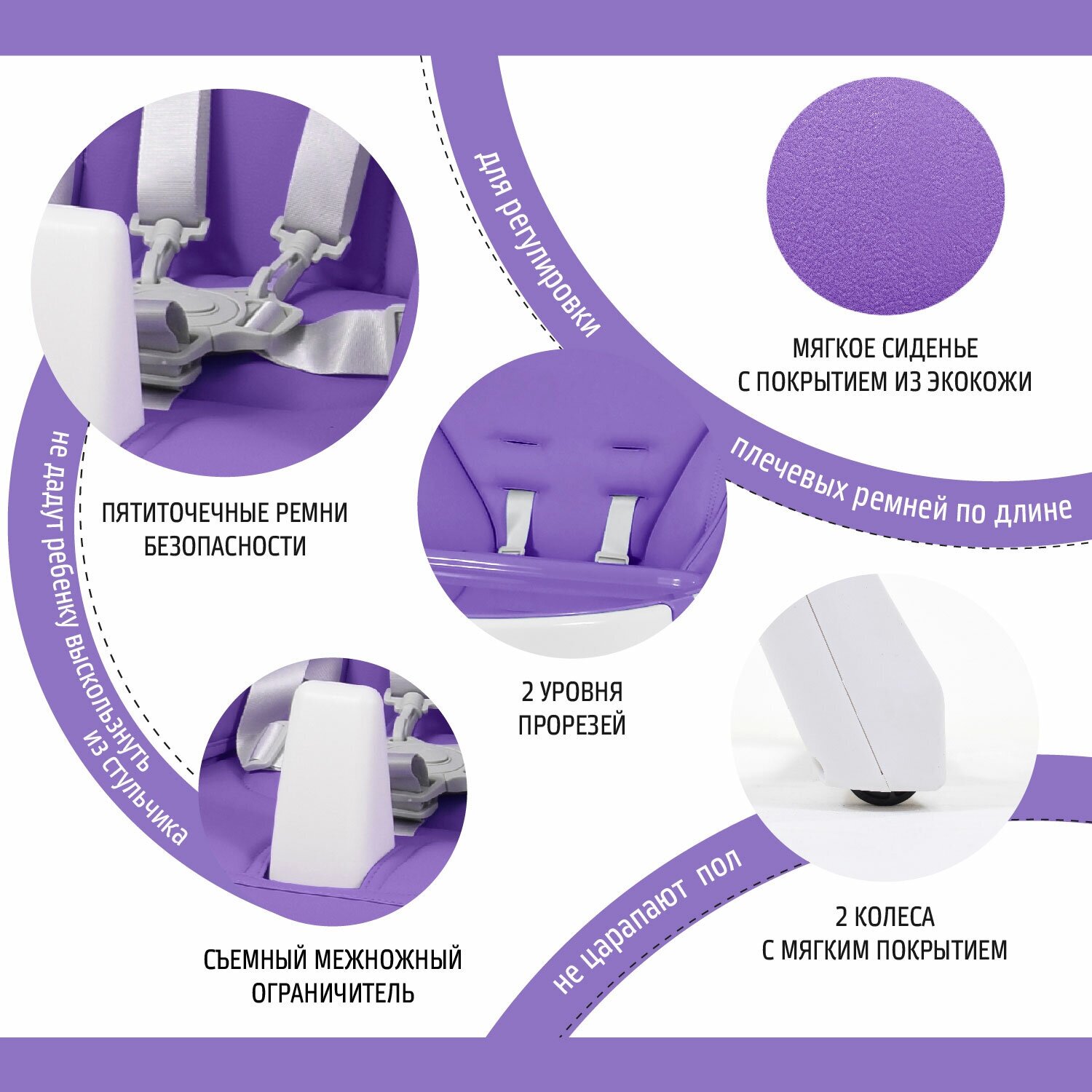 Стульчик растут вместе с малышом: спинка, подножка и ремни безопасности регулируются по мере того, как ребенок подрастает. Спинка и подножка регулируются с помощью удобных рычагов, не требующих усилий.