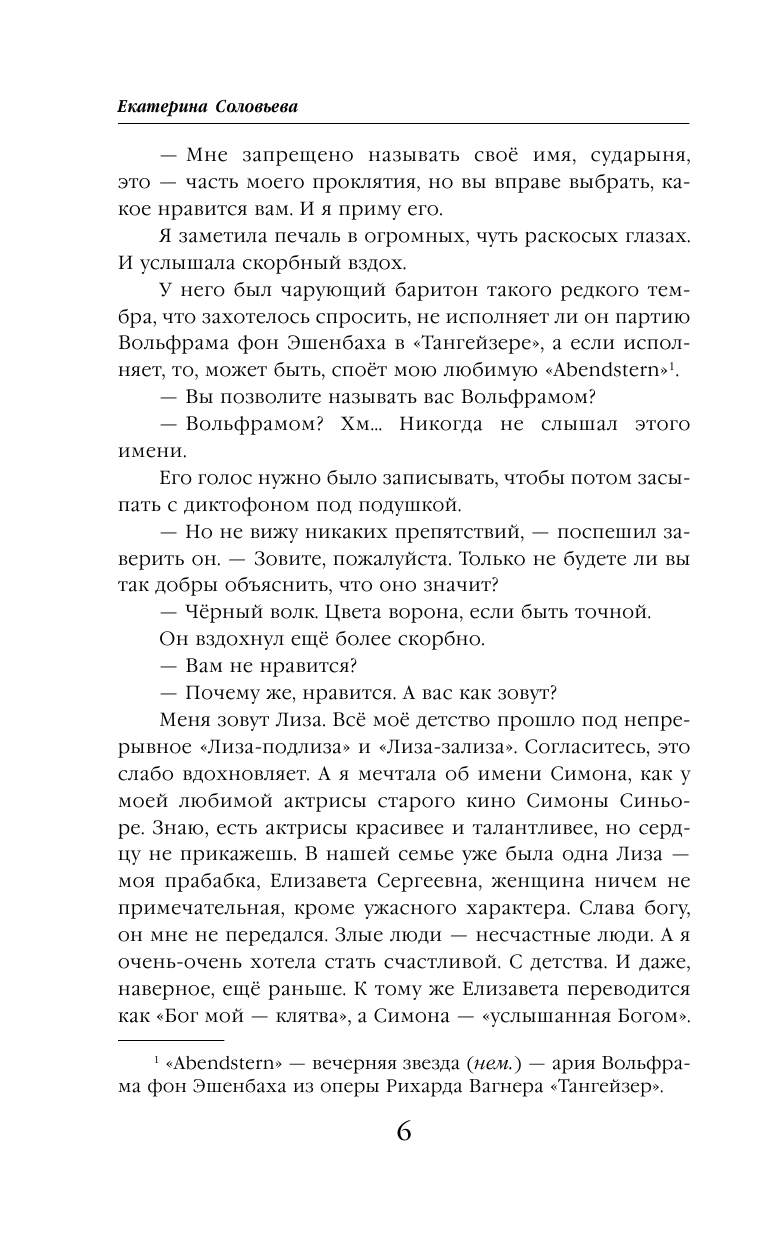 С самого детства Елизавету сопровождает классическая музыка. Это не только музыкальная школа, походы на концерты и в оперу, привычка слушать классику по радио и в интернете. Музыка - часть её жизни, её друг. Трагичными мелодиями она предостерегает девушку от неприятностей, весёлыми - развеивает усталость и грусть. Но почему, когда Лиза встретила загадочного волка из волшебной страны, а он вдруг превратился в прекрасного принца, пусть и всего на одну летнюю ночь, мелодии, предвещающие радость, покинули её? И больше не вернулись, как и принц. У героини есть только один выход: найти его! Где бы он ни был и какими бы опасностями не обернулись её поиски.
