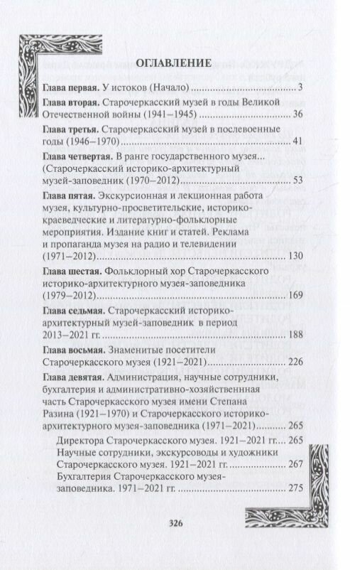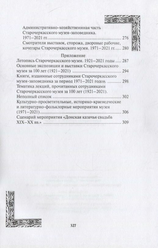 В коллективном труде нынешних и бывших сотрудников Старочеркасского историко-архитектурного музея-заповедника представлена самая полная версия истории этого учреждения культуры Ростовской области, ныне известного далеко за пределами Дона и внесенного в туристические справочники ЮНЕСКО.