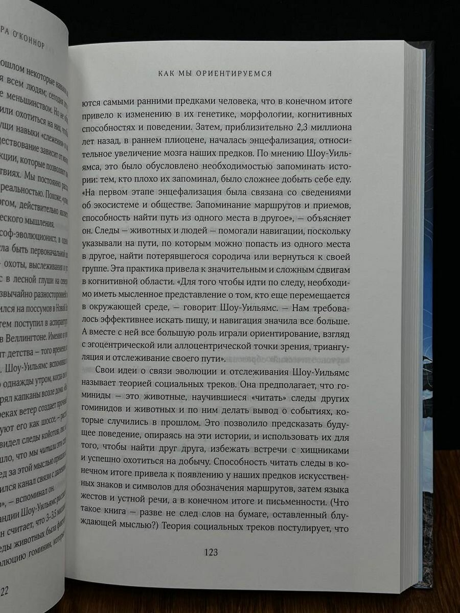 Несколько раз я порывалась бросать эту книгу, но не потому что она плохая, а потому что автор описывает скорее разные народы, которые обитают в землях без крупных заметных ориентиров, и что они всё-таки умудряются там не теряться. Время от времени будут очень пространные описания из жизни автора. И потом ближе к концу раздела, а их всего три, будет информация именно о человеке, как у него что предположительно работает при ориентировании. Это больше философский труд, чем научный. Где автор говорит, что если человек не будет учиться ориентироваться в пространстве, смотря на мир своими глазами, а не через GPS, то мы, может быть, потеряем что-то очень и очень важное, что делает нас людьми.