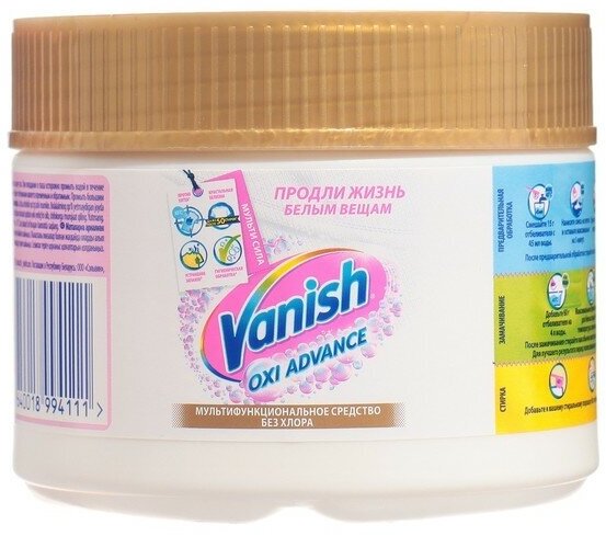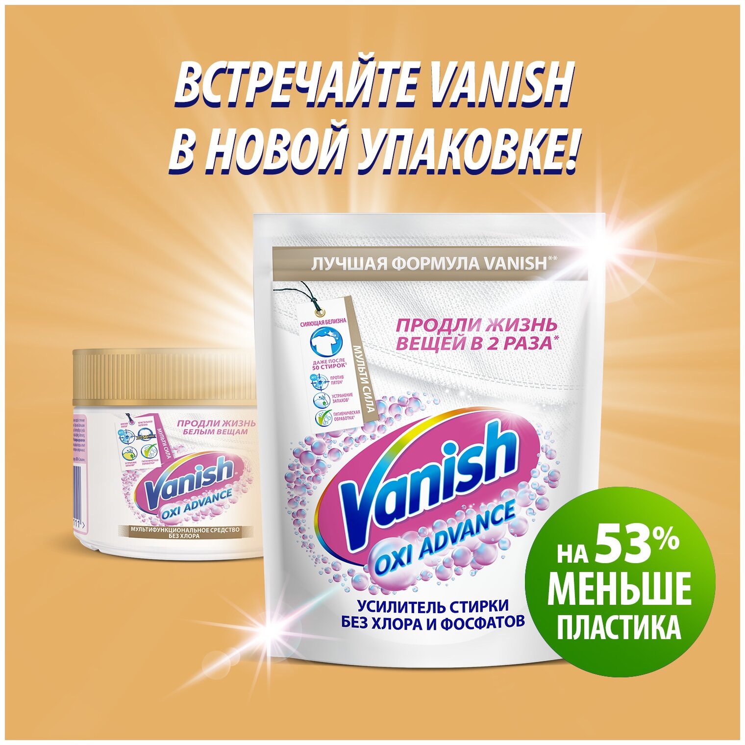 Vanish Мультисила новое мультифункциональное средство без хлора для усиления качества стирки белых тканей. Теперь Ваниш не только эффективно удаляет пятна, но и сохраняет белизну вещей даже после 50 стирок, избавляет от неприятного запаха и производит гигиеническую обработку! Ваниш Мультисила одно решение трех проблем! Продли жизнь любимым вещам с Vanish!