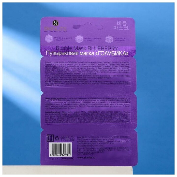 Маска для лица Skinlite Голубика пузырьковая 12г