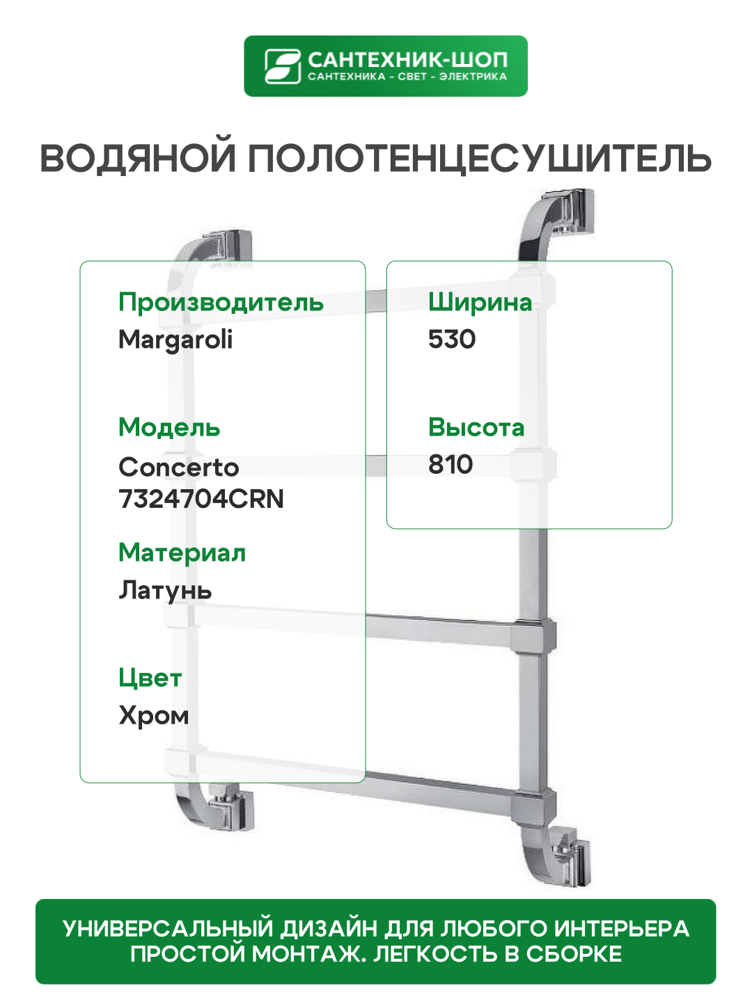 Сервис сравнения цен СкидкаГИД предлагает сравнить цены на товар «Водяной полотенцесушитель Margaroli Concerto 7324704CRN Хром»