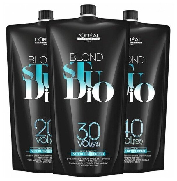 Проявитель цвета 9% для совместного применения с профессиональными осветляющими красителями Blond Studio: Platinium без аммиака для светлых волос и Platinium Plus с аммиаком для темных волос.
