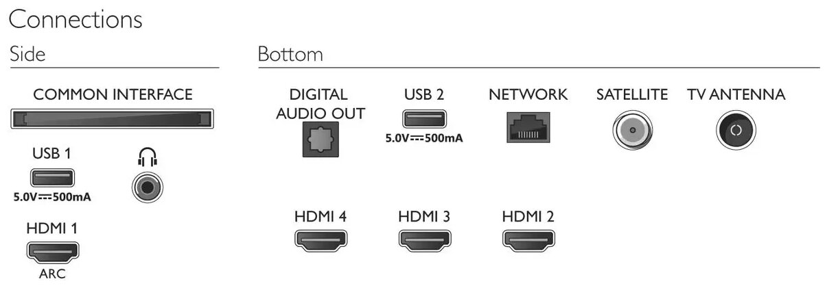 Удобное расположение кабеля питания и портов. - Хороший телек, из достоинств система Android TV 10, а значит много софта без танцев с бубном. Так же есть фирменная подсветка от филипс, которая хорошо дополняет картинку. Звук мне тоже показался приятным.