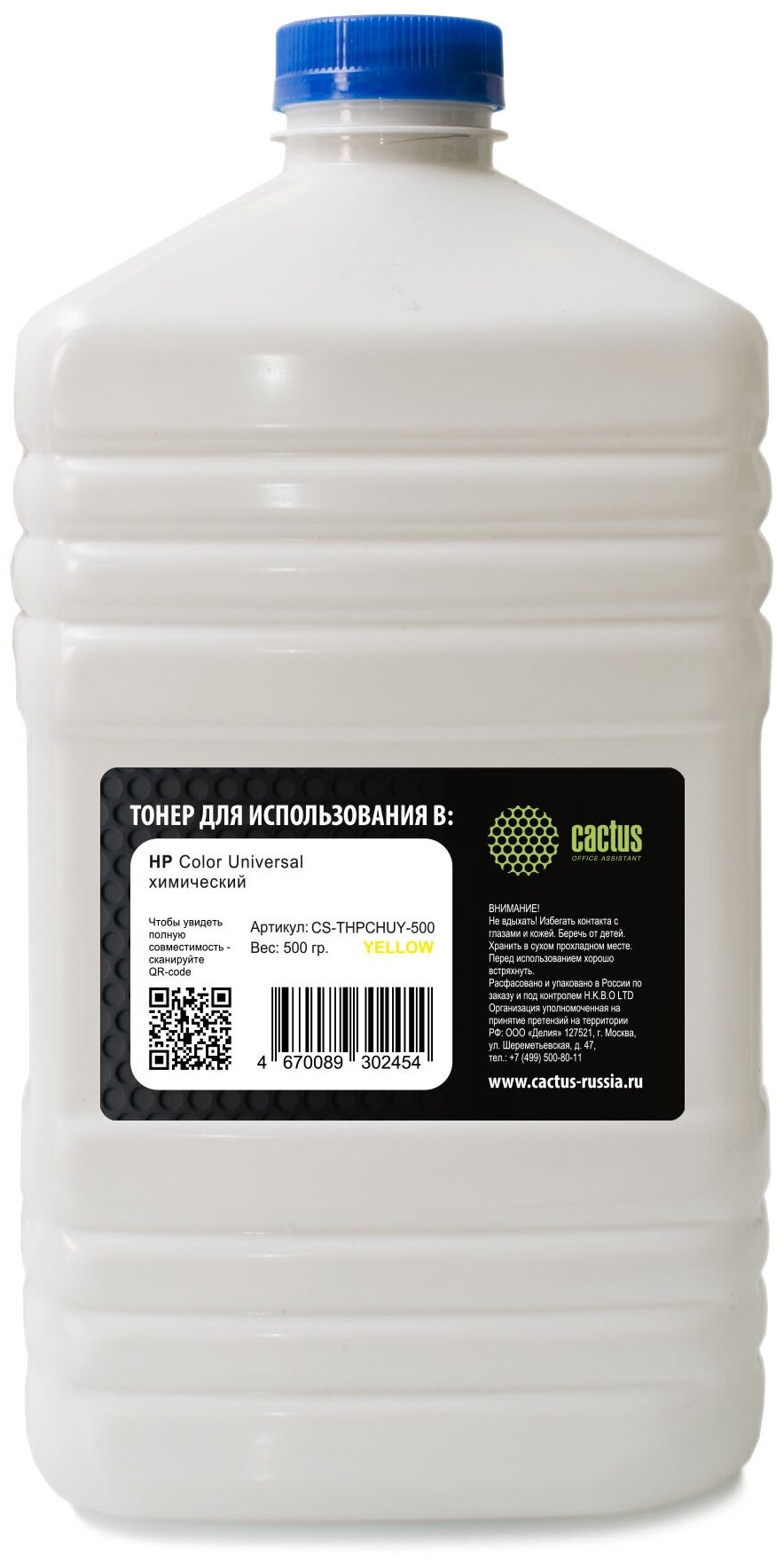 Тонер CACTUS для HP Color Universal желтый 500грамм флакон CS-THPCHUY-500