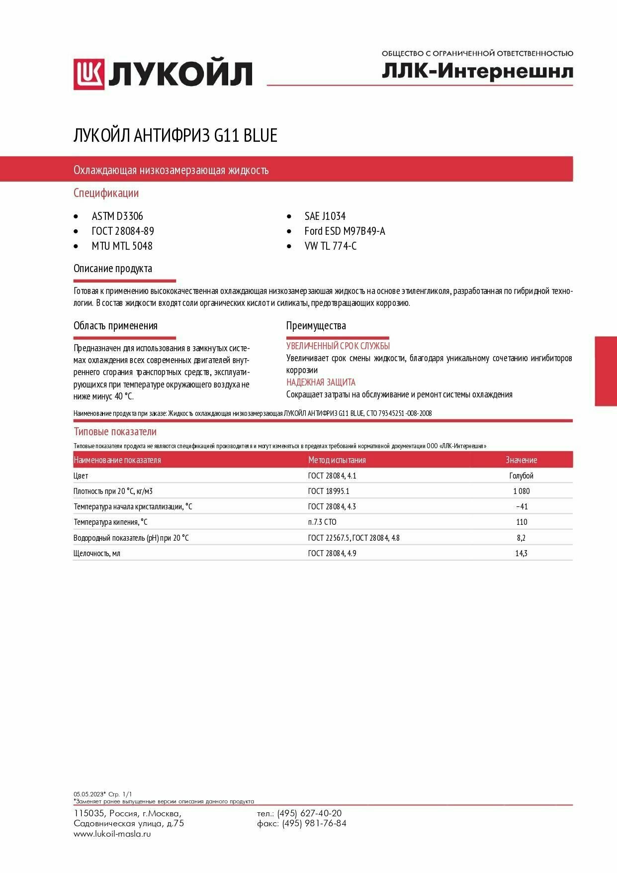 Антифриз ЛУКОЙЛ G11 - готовая к применению высококачественная охлаждающая низкозамерзающая жидкость на основе этиленгликоля, разработанная по гибридной технологии. В состав жидкости входят соли органических кислот и силикаты, предотвращающих коррозию.
