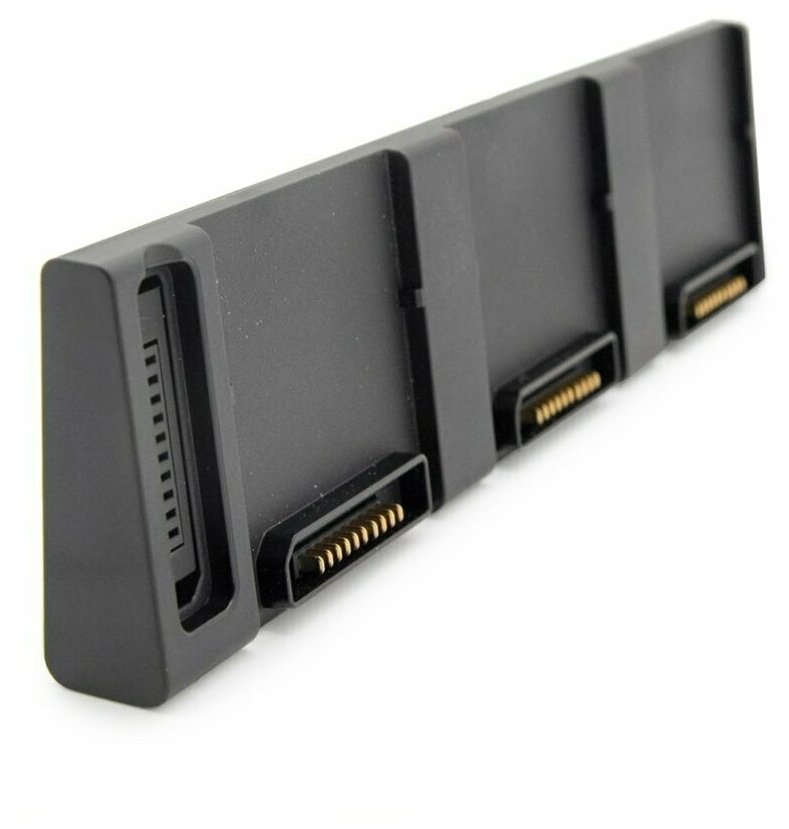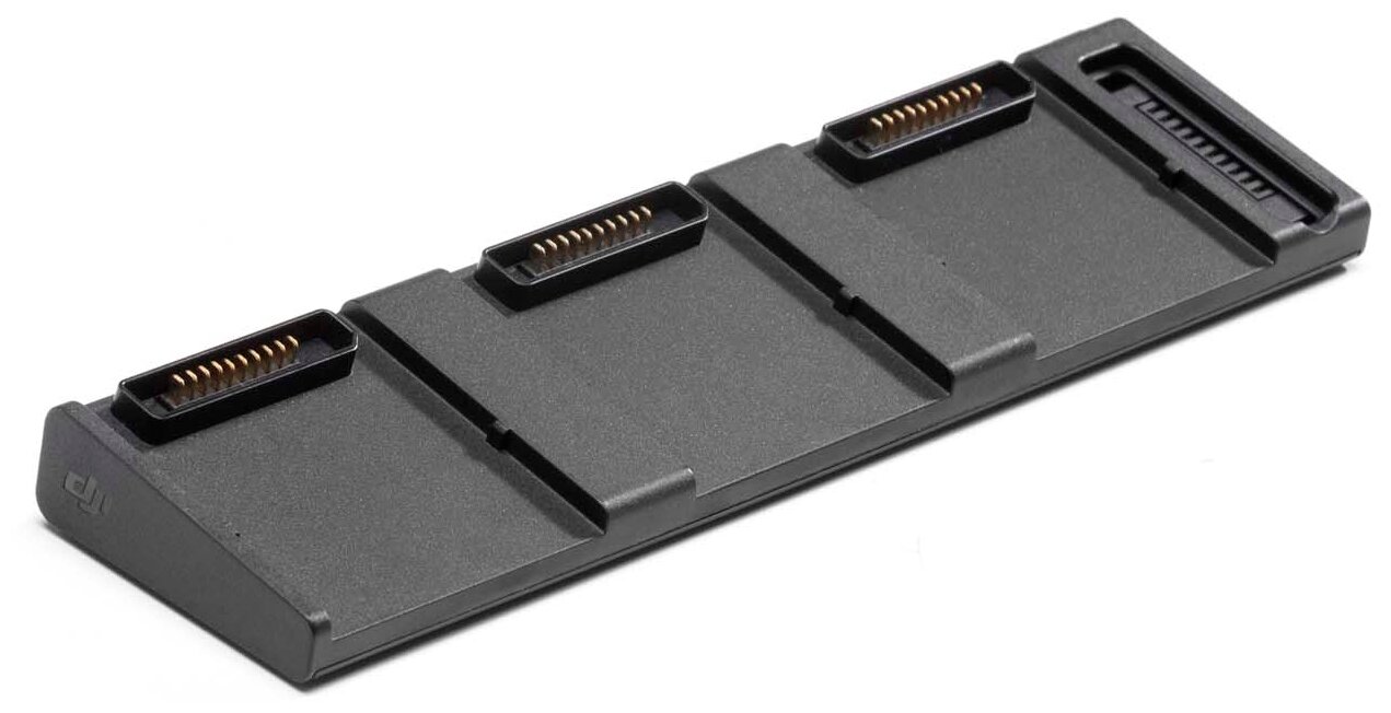 Зарядный хаб для батарей DJI Mavic Air 2. Рассчитан на одновременную зарядку трех источников питания. Оснащен портами для использования вместе с автомобильным зарядным устройством и зарядным устройством для батарей Mavic Air 2.