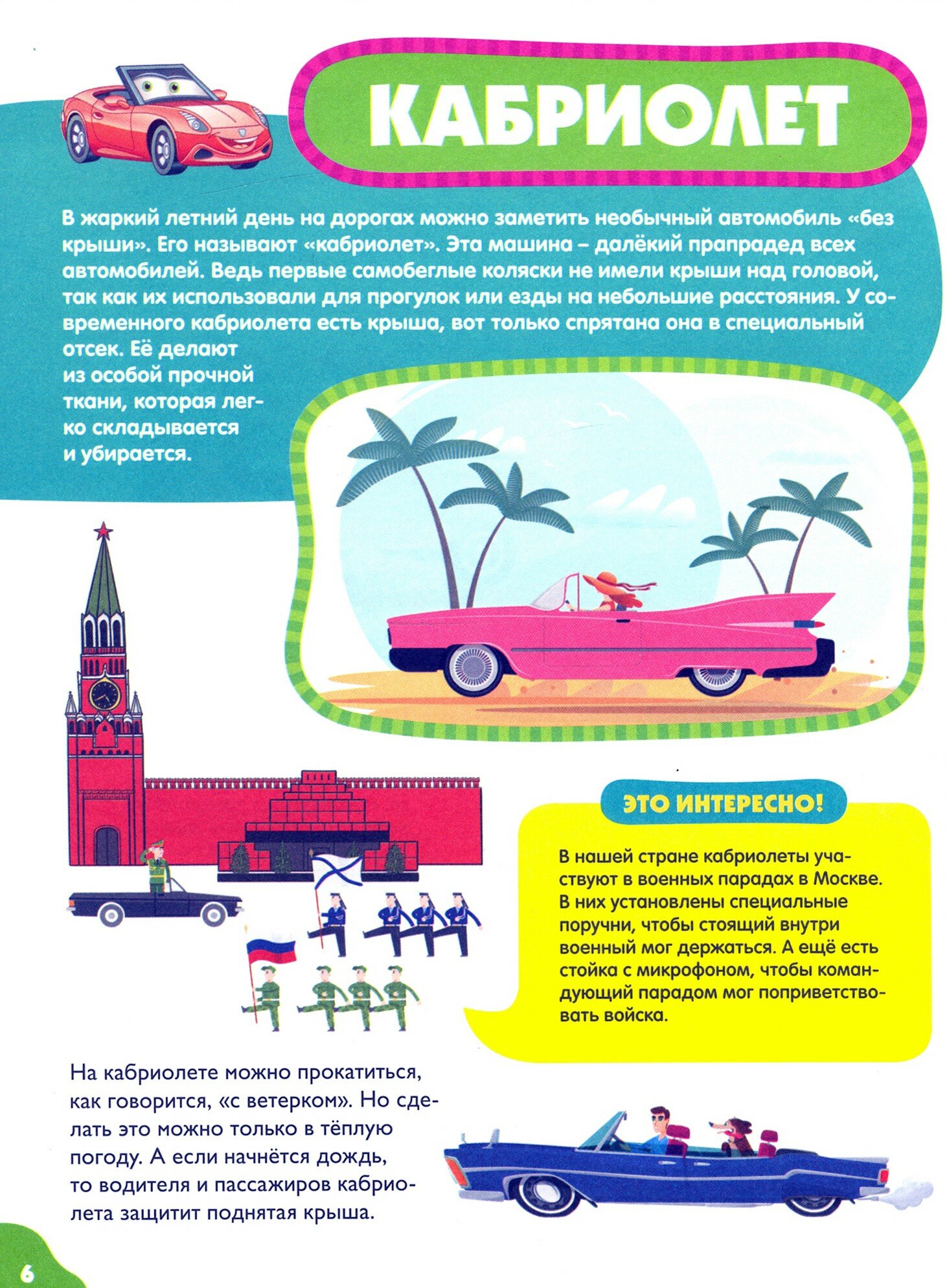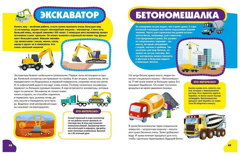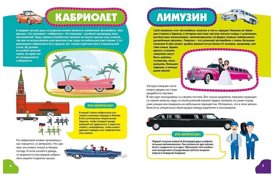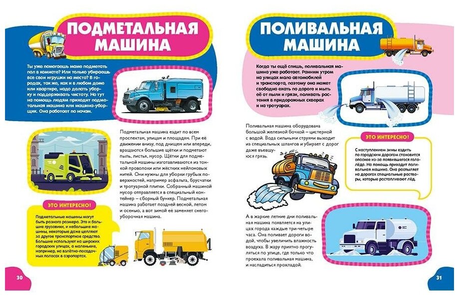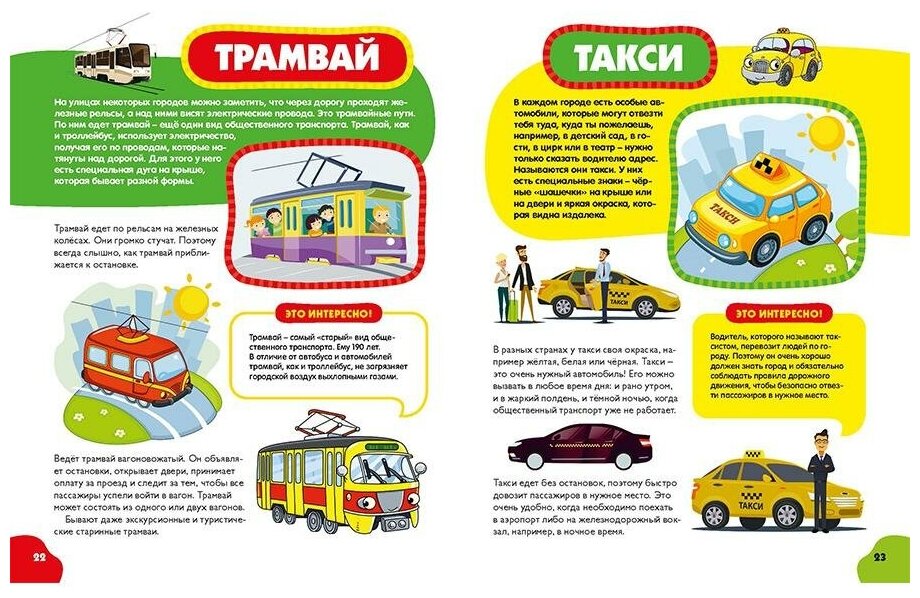 Эта книга познакомит вашего ребёнка с самым разным транспортом техникой, которая помогает людям, например, перевозить пассажиров и грузы, строить дома и дороги, убирать урожай. Конечно, со многими ваш малыш уже познакомился на улицах города или посёлка, видел полезные машины на стройках или в полях. Наша энциклопедия для самых маленьких детей не только расскажет ребёнку о легковых и грузовых автомобилях, городском транспорте, строительных и полезных машинах, но и познакомит с поездами и мототехникой. А забавные и красочные иллюстрации не дадут ему скучать!